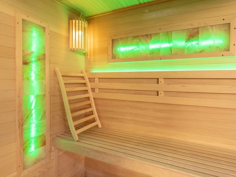 Hochwertiges Holz mit glatter Oberfläche sorgt nicht nur für eine ansprechende Ästhetik, sondern vor allem für Langlebigkeit und Robustheit. Warmes und angenehmes Licht schafft die perfekte Atmosphäre zum Entspannen und Erholen. Lichttherapie verstärkt diesen Effekt zusätzlich.